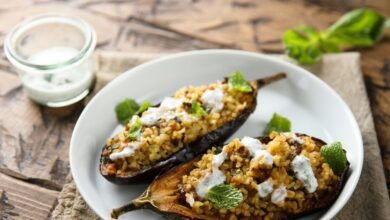 Συνταγή για μελιτζάνες γεμιστές με κινόα