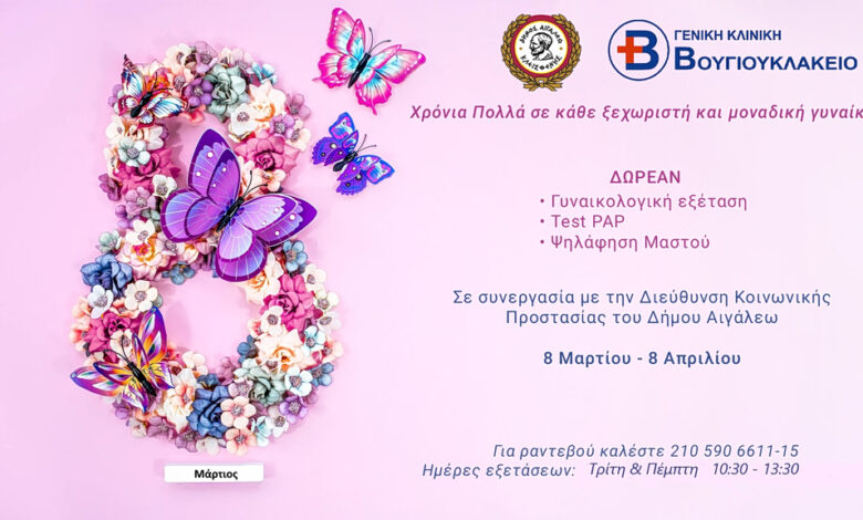 Η Παγκόσμια Ημέρα της Γυναίκας δεν εξαντλείται σε ευχές, αλλά μετουσιώνεται σε πράξη φροντίδας στον Δήμο Αιγάλεω. Σε μια εξαιρετική πρωτοβουλία κοινωνικής ευθύνης, η Διεύθυνση Κοινωνικής Προστασίας του Δήμου ενώνει τις δυνάμεις της με τη Γενική Κλινική «Βουγιουκλάκειο», προσφέροντας δωρεάν γυναικολογικό έλεγχο (Test PAP και ψηλάφηση μαστού) για έναν ολόκληρο μήνα.