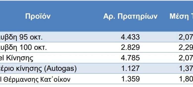 Στα 2,073 ευρώ ανήλθε η μέση τιμή για το diesel κίνησης και στα 1,371 το υγραέριο κίνησης. Όσοι θέλουν να γεμίσουν το ντεπόζιτο τους με «100ρα» αμόλυβδη θα πρέπει να προετοιμαστούν, καθώς η μέση τιμή διαμορφώνεται στα 2,829 ευρώ το λίτρο.