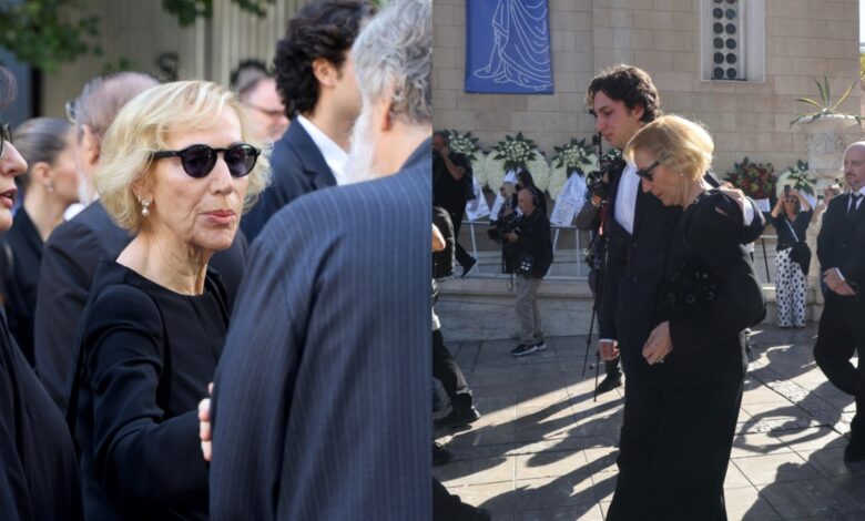 Κηδεία Διονύση Σαββόπουλου: Καταρρακωμένη η σύζυγός του, Άσπα Αραπίδου στη Μητρόπολη