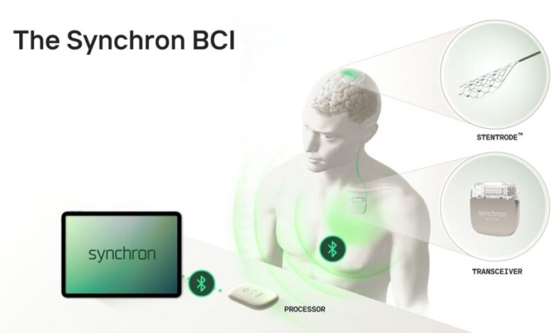 Η συσκευή Stentrode της Synchron εμφυτεύεται στην κορυφή του κινητικού φλοιού του εγκεφάλου, «διαβάζει» τα εγκεφαλικά σήματα και τα μετατρέπει σε εντολές που επιλέγουν εικονίδια ή ελέγχουν λειτουργίες σε μια οθόνη