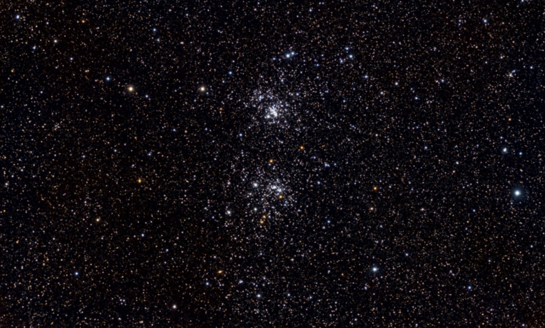Το Διπλό Σμήνος είναι ένα από τα πιο εντυπωσιακά και μαζικά σμήνη γαλαξιών του γνωστού σύμπαντος, τοποθετημένο στον αστερισμό του Περσέα. Αποτελείται από περισσότερους από χίλιους γαλαξίες, με συνολική μάζα που ισοδυναμεί με περίπου ένα τρισεκατομμύριο Ήλιους. Τα θερμά αέρια στο εσωτερικό του, γνωστά ως ενδοσμηνιακό μέσο (ICM), εκπέμπουν ισχυρές ακτίνες Χ, αποκαλύπτοντας τη χημική τους σύνθεση και την ιστορία εκρήξεων υπερκαινοφανών που διαμόρφωσαν την κοσμική εξέλιξη.
