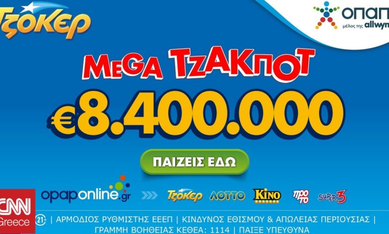 Mega τζακ ποτ 8,4 εκατ. ευρώ απόψε από το ΤΖΟΚΕΡ – Πώς γίνεται η διαδικτυακή συμμετοχή