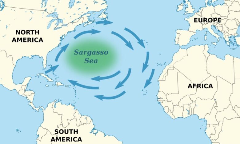 Η θέση της Θάλασσας των Σαργασσών στον Ατλαντικό Ωκεανό