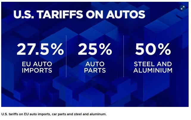 Επιδιώκοντας να προστατεύσει και να ενισχύσει τη βιομηχανία των αυτοκινήτων των ΗΠΑ, ο Τραμπ επέβαλε δασμούς 25% σε οχήματα και ανταλλακτικά αυτοκινήτων που κατασκευάζονται στο εξωτερικό και ήδη έχει πλήξει τον κλάδο στην ΕΕ.