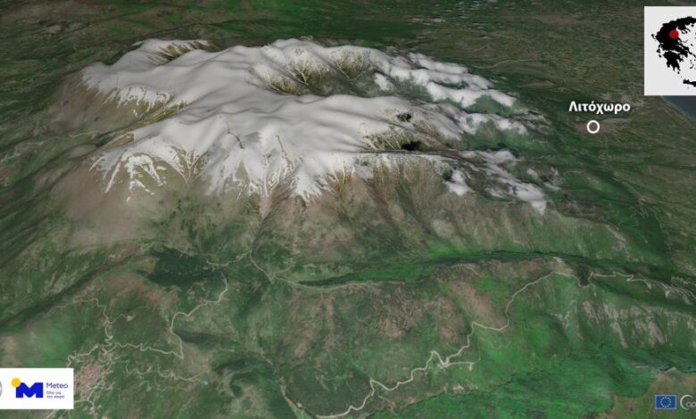 Το βουνό των Θεών, τον Όλυμπο «ντυμένο» στα «λευκά» καταγράφει δορυφορική εικόνα, που δημοσιεύθηκε τη Δευτέρα (27/4).