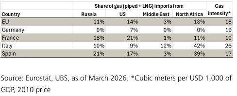 Η Γερμανία, η Γαλλία και η Ισπανία εισάγουν σχετικά λίγη ενέργεια από τη Μέση Ανατολή, ενώ η Ιταλία είναι πιο εκτεθειμένη, εισάγοντας περισσότερη από την περιοχή και διατηρώντας υψηλότερο μερίδιο πετρελαίου και φυσικού αερίου στο ενεργειακό της μείγμα.