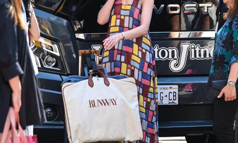 Έχω δει αρκετές τάσεις στο μανικιούρ να έρχονται και να παρέρχονται. Αλλά σε μερικές φωτογραφίες, η Hathaway κρατάει σφιχτά μια τσάντα ρούχων με το εμπορικό σήμα της Runway… οπότε ίσως είναι ακόμα ένα βήμα μπροστά στον κόσμο των προβλέψεων.