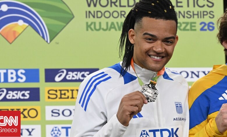 Η απονομή του ασημένιου μεταλλίου στον Εμμανουήλ Καραλή στο παγκόσμιο πρωτάθλημα κλειστού στίβου