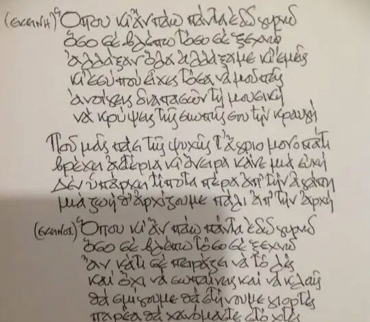 Ο Άλκης Αλκαίος, δημιουργώντας τους στίχους για το νέο τραγούδι, είχε δώσει τον ίδιο τίτλο ως φόρο τιμής στον Μάνο Χατζιδάκι.